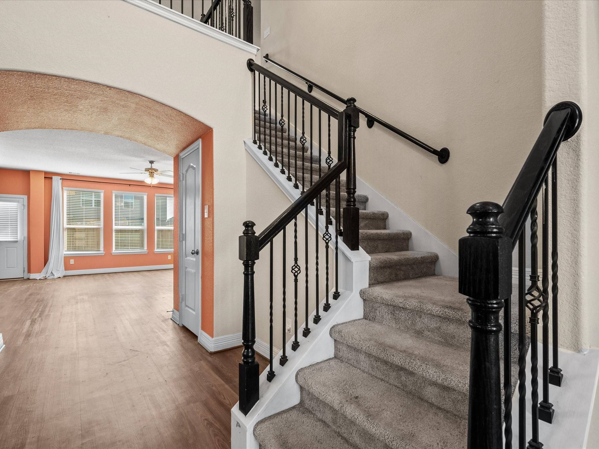 Step inside this beautifully maintained two-story home offering 4 bedrooms and 3.5 baths, combining comfort and style in every detail. The inviting entryway opens to soaring ceilings, elegant wrought-iron stair railings, and abundant natural light, formal study and a dining room. The open-concept kitchen features granite countertops, a spacious island, modern cabinetry, and stainless steel appliances—perfect for everyday living and entertaining. The private first-floor primary suite includes a luxurious bath with dual sinks, soaking tub, and separate shower. Upstairs offers three additional bedrooms, two full baths, as well as a media and a game room. Enjoy outdoor gatherings under the covered patio overlooking a large fenced backyard. Conveniently located near shopping, dining, and top-rated schools, this move-in-ready home blends modern design with everyday functionality.